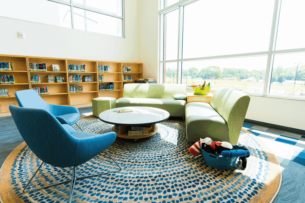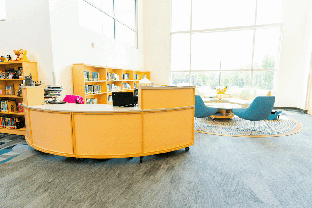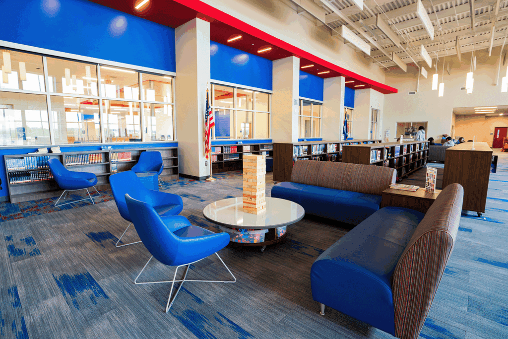Having received a complete refresh, the high school’s media center is now the “hub of the school,” says Dobson. What was once a dark, windowless room is now a bright, flexible environment that students genuinely want to be in. “They come in every morning before school just to talk. Kids come in to eat lunch and play games. Now, it’s the place to hang out.”